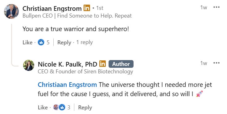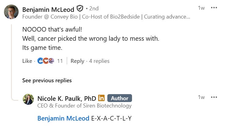 I said earlier that Nicole might be my favorite ever founder. Her response to her own cancer diagnosis epitomizes why.